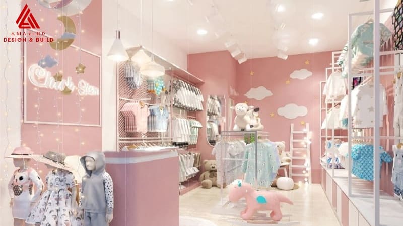 Trẻ em là một trong những nhóm khách hàng cực kì tiềm năng mà các chủ cửa hàng thời trang nên đặc biệt chú ý. Đối với những cửa hàng này, bạn nên decor với nhiều màu sắc và các hình ảnh bắt mắt, xinh xắn phù hợp với lứa tuổi của các bé.