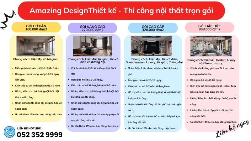 Các gói thiết kế nội thất theo yêu cầu - trọn gói, tiết kiệm
