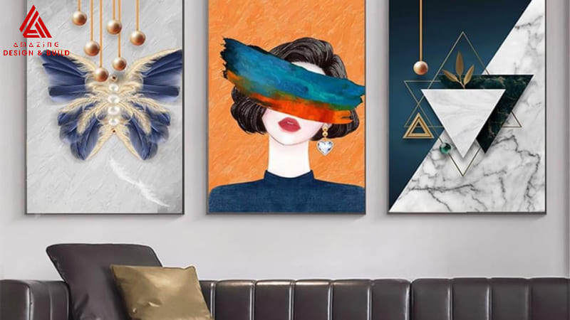 Điểm nổi bật trong mẫu này là việc sử dụng tranh ảnh để làm vật trang trí chủ đạo. Các bức tranh khi sử dụng sẽ có chủ đề cổ điển, đại dương, trừu tượng,…với mẫu thiết kế này thường được dùng cho thiết kế nội thất phòng khách nhà phố.